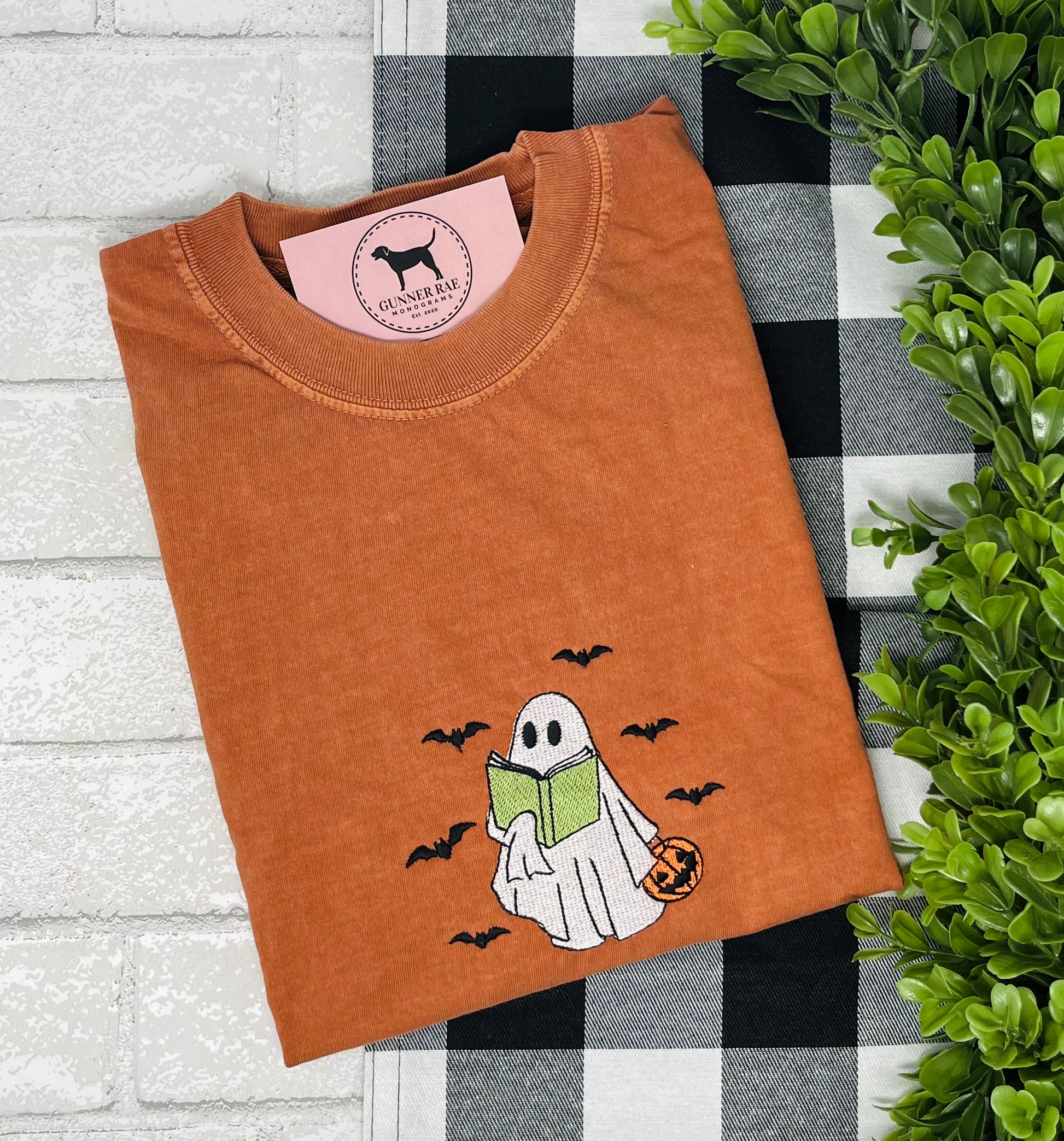 Celebrate the spooky season in style with this handmade embroidered BOOK GHOST sweatshirt, thoughtfully crafted with care and detail. Whether you prefer a cozy sweatshirt or a classic t-shirt, you can fully customize your garment choice and color to match your personal style.