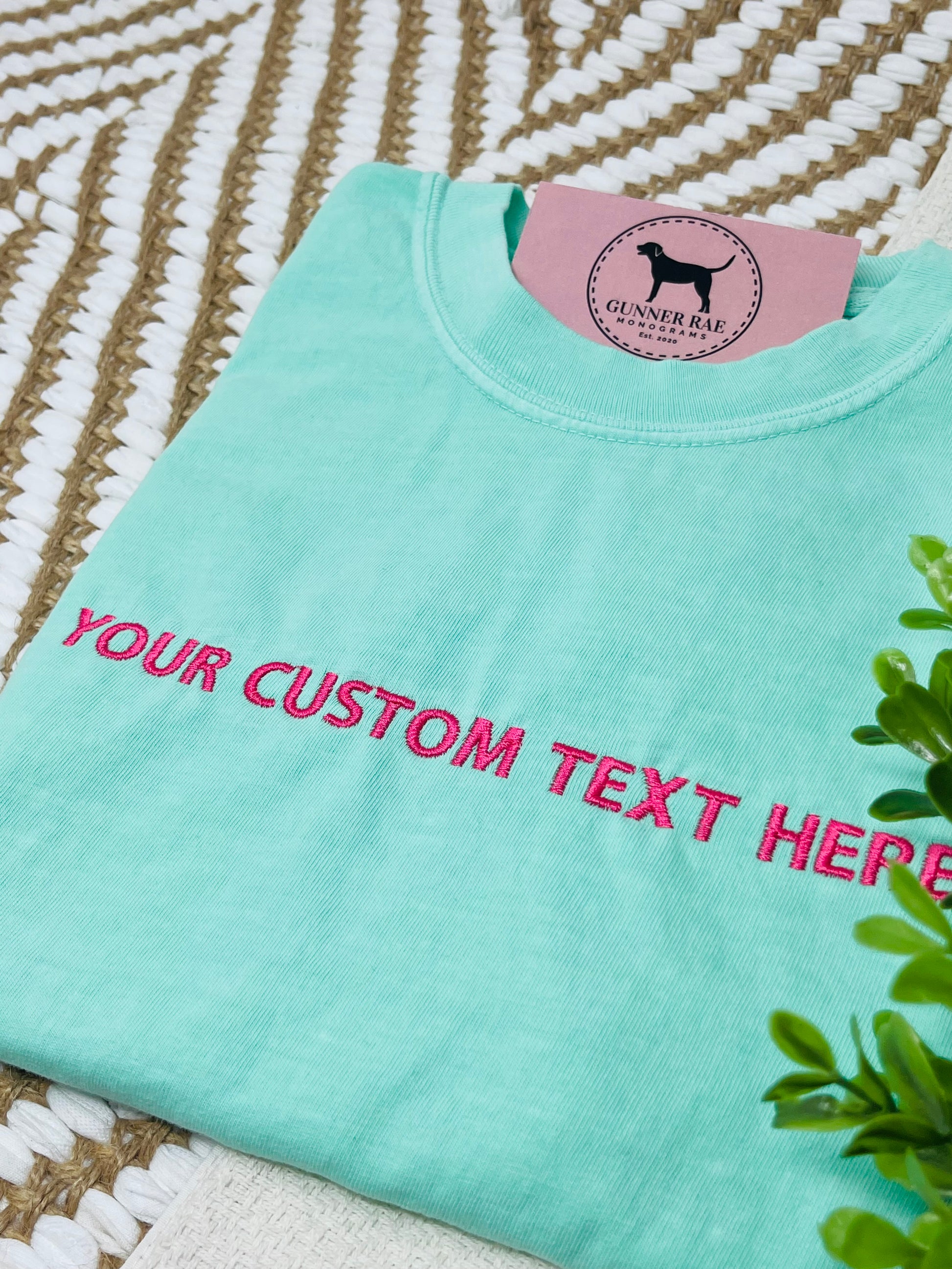 **PLEASE DOUBLE CHECK SPELLING AND PUNCTUATION AS THE ITEM WILL BE EMBROIDERED EXACTLY AS SHOW IN THE TEXT BOW**
