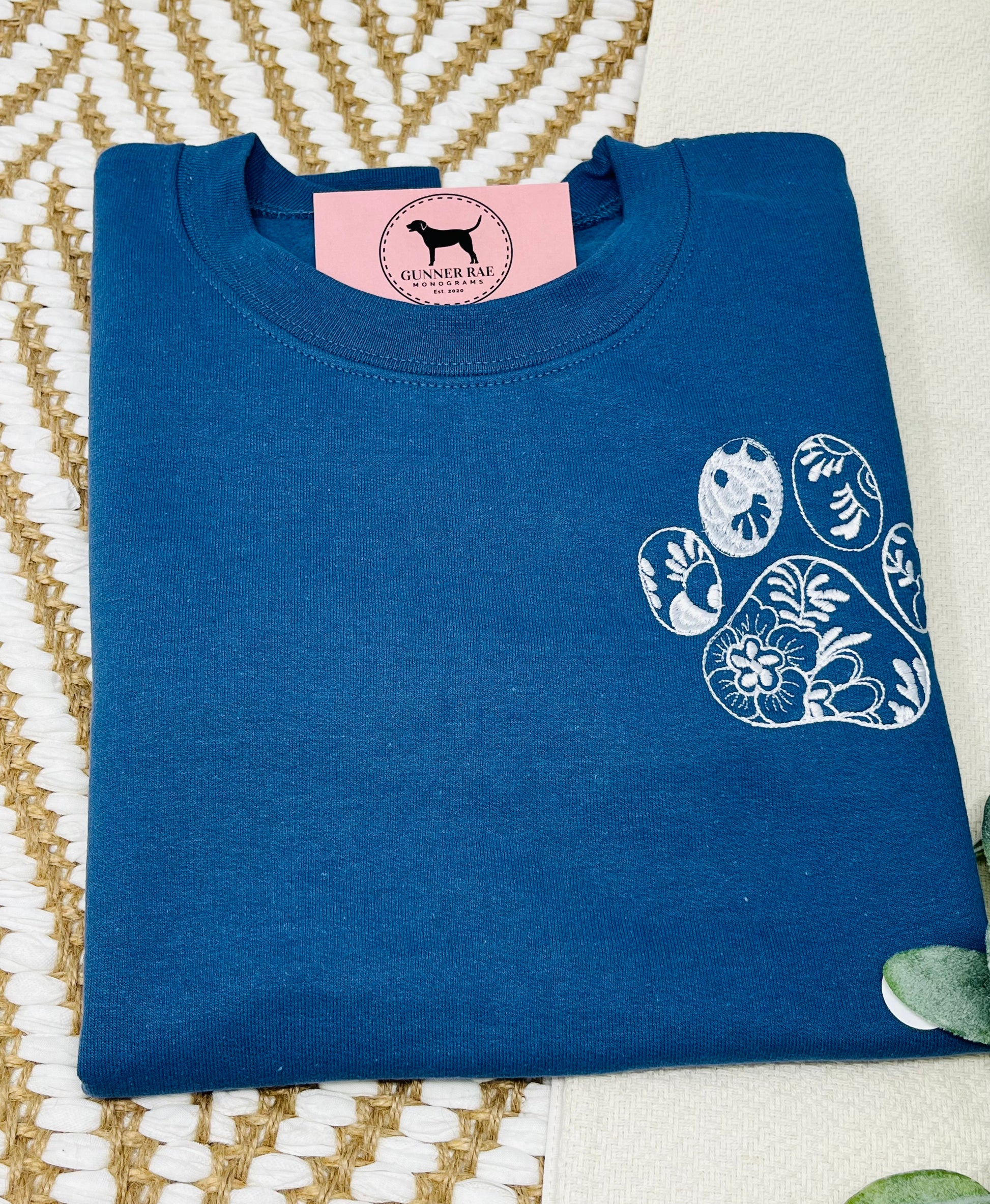 FLORAL DOG PAW Embroidered T-shirt or Sweatshirt