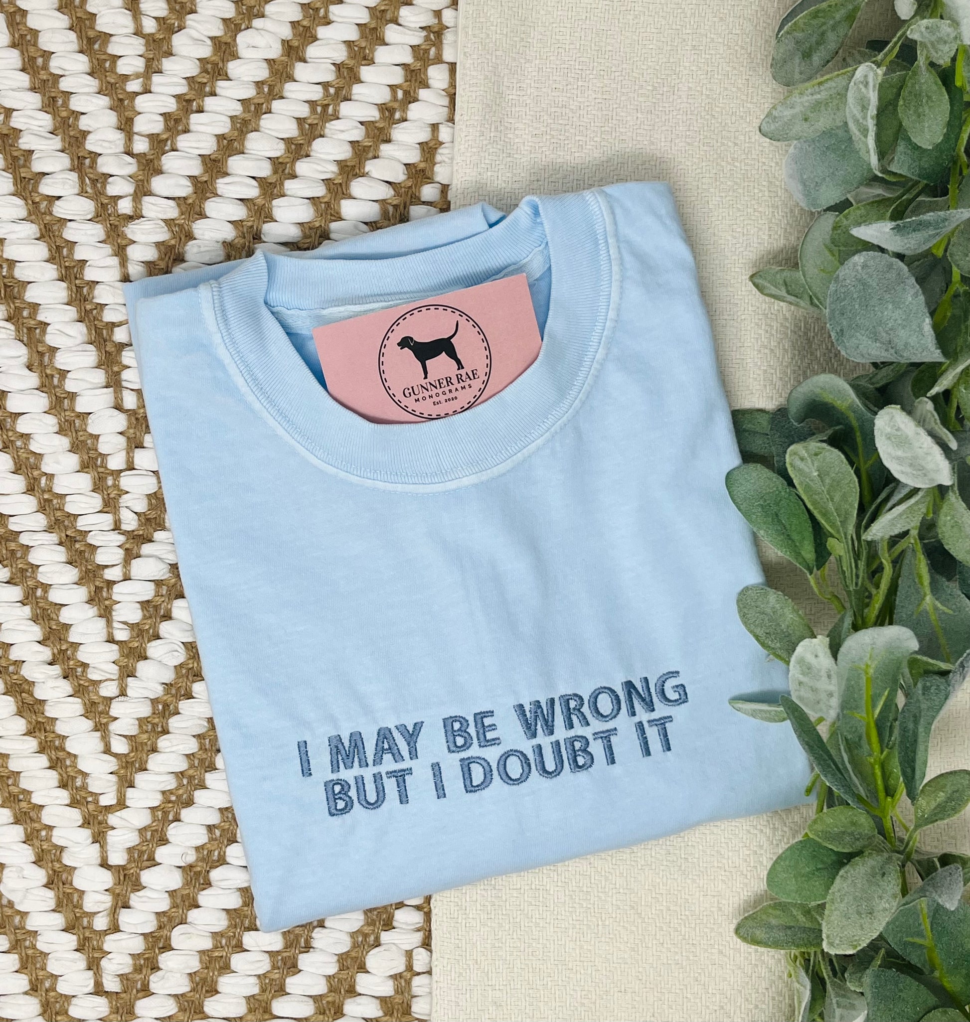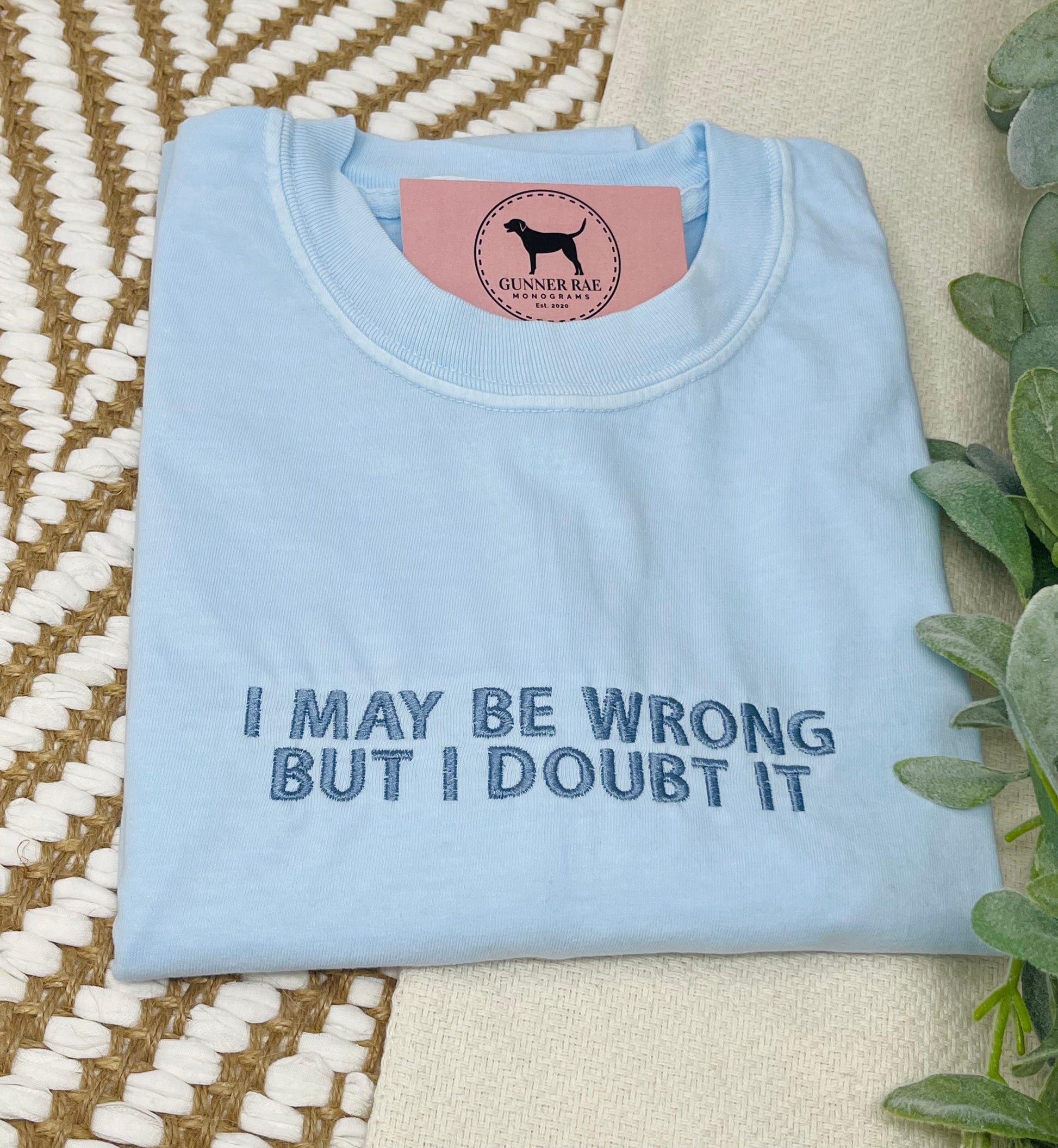 I MAY BE WRONG BUT I DOUBT IT Custom Embroidered T-shirt or Sweatshirt