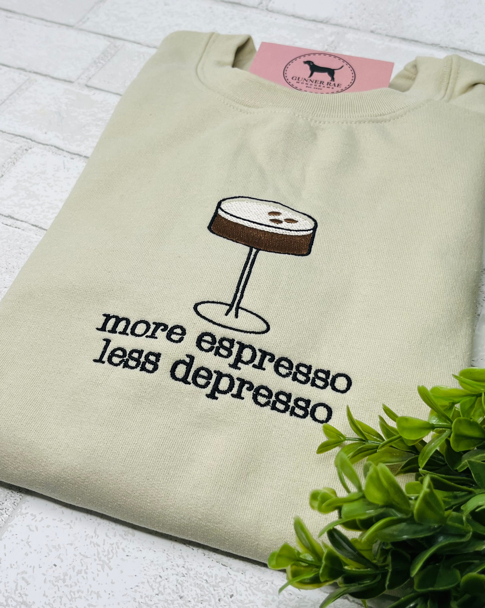 MORE ESPRESSO, LESS DEPRESSO Embroidered T-shirt or Sweatshirt