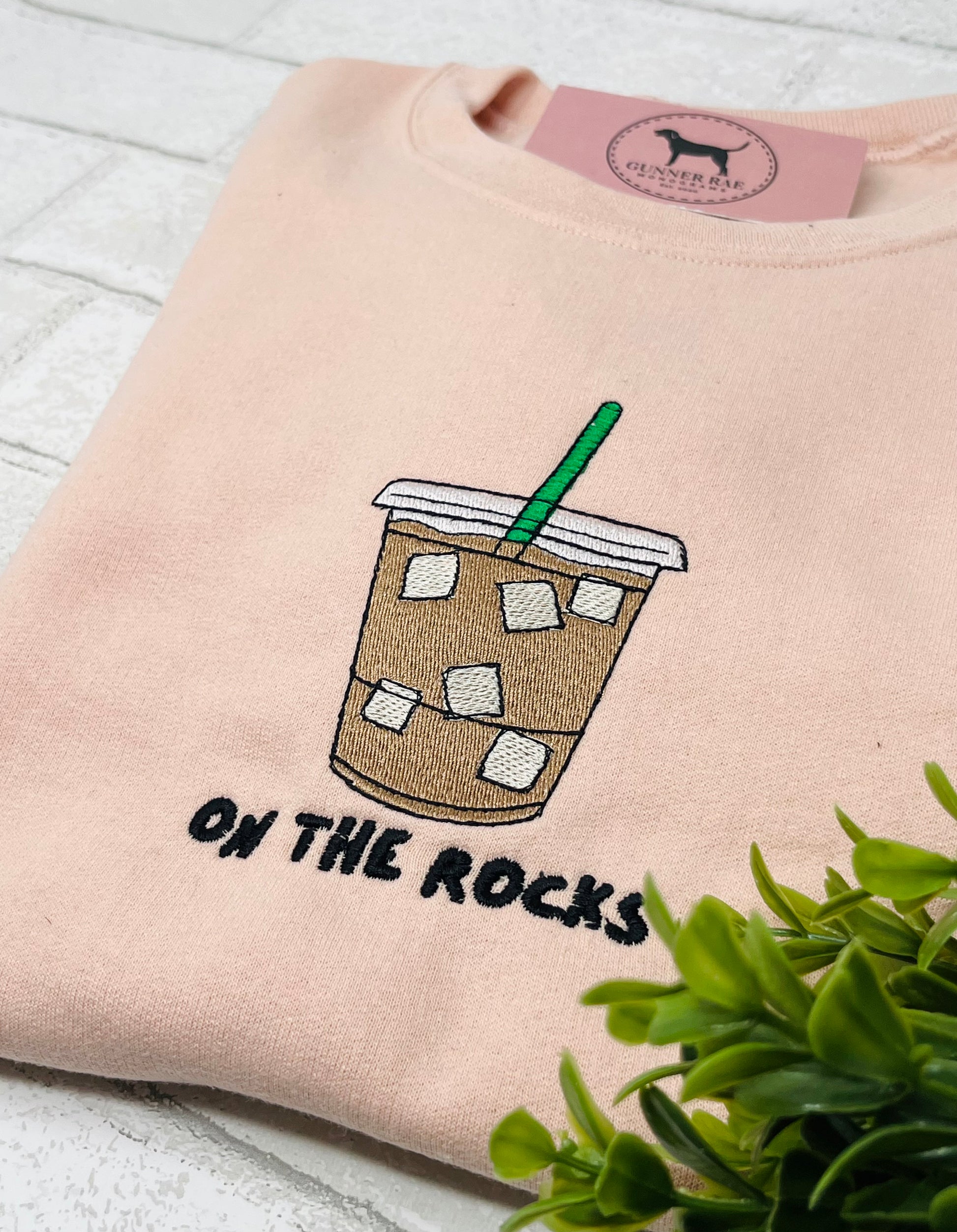ON THE ROCKS (ICED COFFEE) Embroidered T-shirt or Sweatshirt
