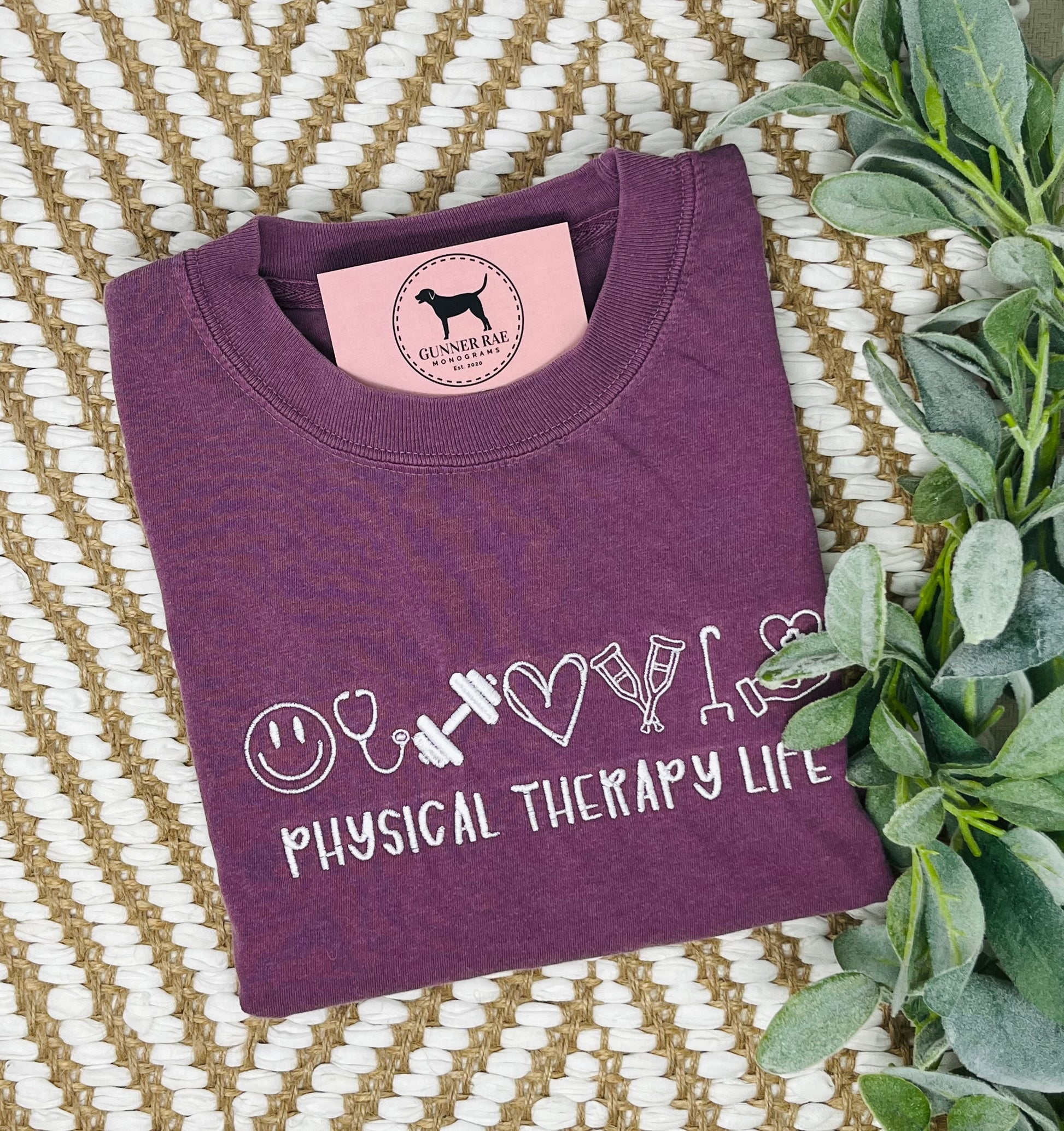 PHYSICAL THERAPY LIFE Embroidered T-shirt or Sweatshirt