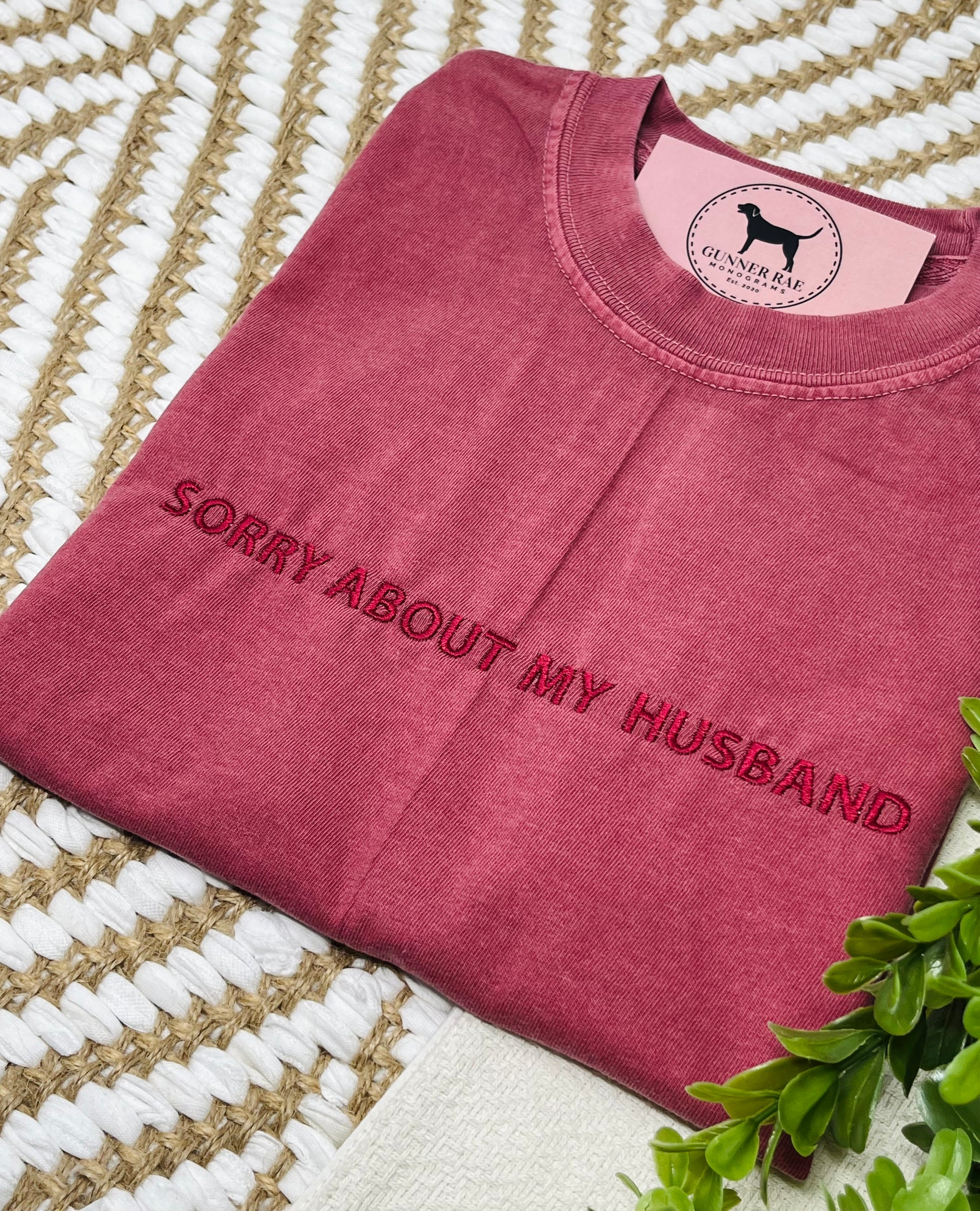 SORRY ABOUT MY HUSBAND Custom Embroidered T-shirt or Sweatshirt