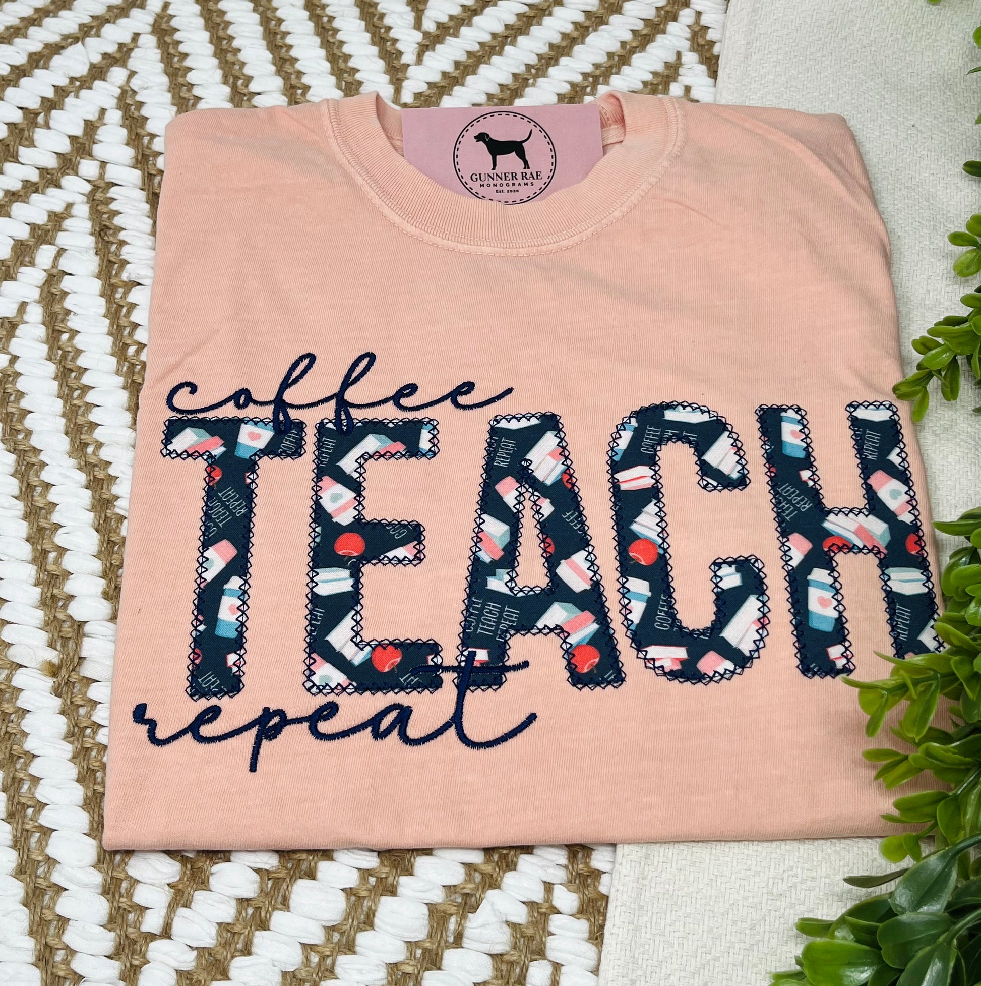 COFFEE TEACH REPEAT Applique T-shirt or Sweatshirt