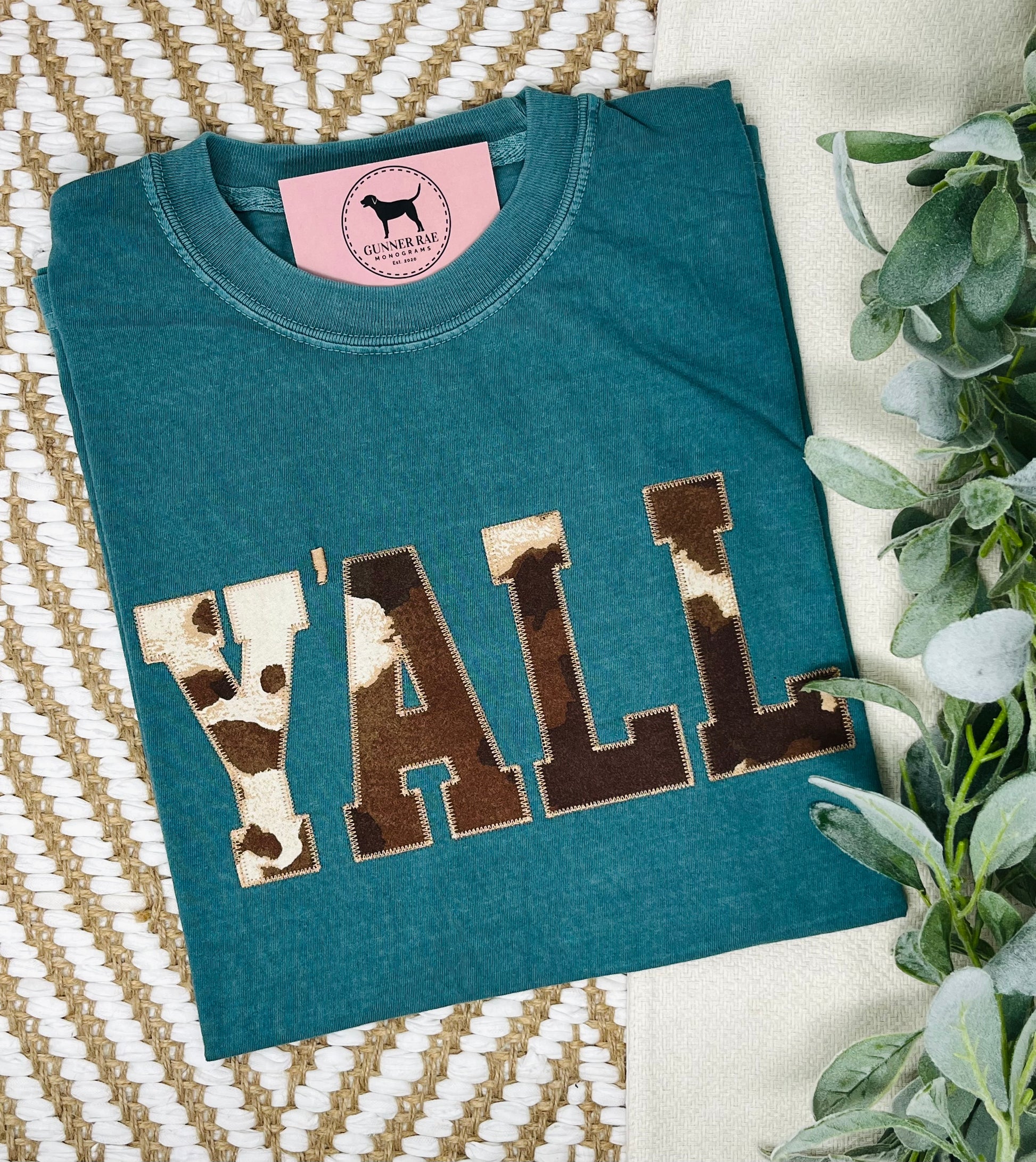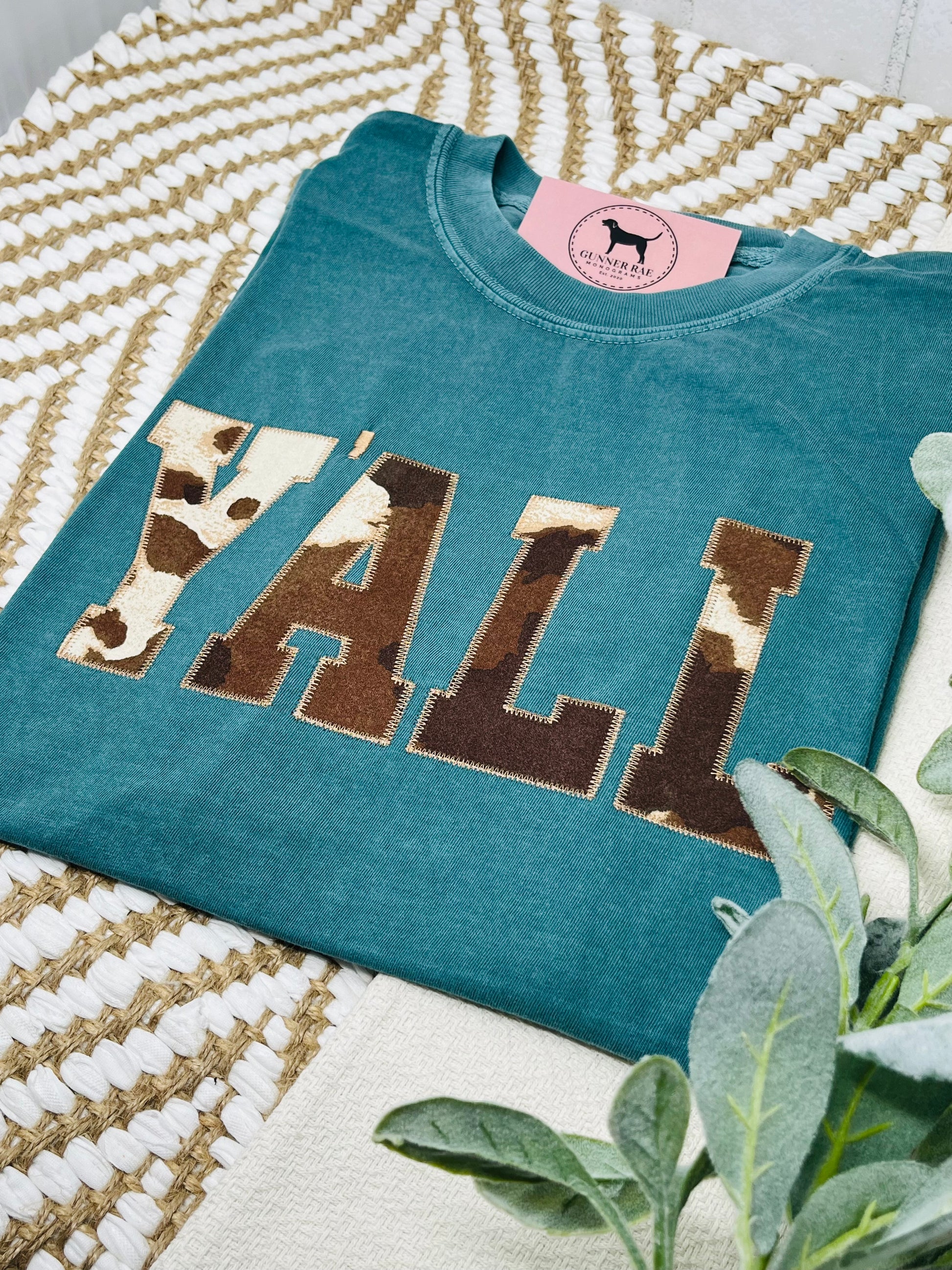 Y'ALL Applique Embroidered T-shirt or Sweatshirt (COWHIDE)